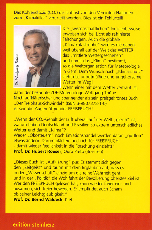 Dieser Tage läuft das Thema in allen Medien Amok, obwohl in wissenschaftlichen Kreisen, freilich nicht in den wortgewaltigsten, vermehrt vor dem gefährlichen Schwachsinn gewarnt wird, der unter dem Titel "Globale Erwärmung" getrieben wird. Wirklich sattelfeste Meteorologen haben die Kampagne schon seit Jahren kommen sehen und dagegen gewettert. Seit aber das Bildungspotenzial auch in dieser Wissenschaft mehr als ausgeschöpft ist, findet man für jeden wirklich noch der unbestechlichen Forschung verpflichteten Spezialisten eine Überzahl von "Experten", welche ihre Erkenntnisse aus der Konsensfähigkeit einer demokratischen Mehrheit von Irrlehren schöpfen. Kompetente Minderheiten werden dagegen gemobbt - weltweit. Es sind eben die Spielverderber der mit teuren Kampagnen und Konferenzen hoch gehaltenen Irrtümer. Eine gefährliche Entwicklung, die sich schon bei der Verteufelung der Kernenergie beobachten liess, und nun einen Trend eingeleitet hat, dank dem sich der Bevölkerung sinnloseste Massnahmen aufschwatzen lassen. Scheinbar normale Bürger lassen sich plötzlich von den Medien beeinflussen. Man kann ihnen zwar täglich Widersprüche in den verordneten Paniken aufzeigen uns sie damit oft erstaunlich rasch beruhigen. Mindestens all jene Menschen, die noch zu eigenen Gedanken fähig sind! Ein guter Rat kann angesichts des wirren Netzwerkes von Fehlinformationen darin bestehen, z.B. ein Buch zu lesen von jenen Forschern, welche die Kampagnen zur "Klimakatastrophe" schon vor Jahren durchschaut hatten, weil sie von Anfang an in den Kommissionen der jährlichen "Klimakonferenzen" gesessen sind und den Mechanismus der Lügen mitverfolgt haben. Al Gore's jüngster Film "An Inconvenient Truth" ist kein Beitrag zur Lösung irgendwelcher Probleme, eher zur Schaffung von solchen. Für Fachleute mit Zugang zu Originaldaten ist er ungeniessbar und für kritische Hinterfrager der vielen Behauptungen schlichtweg unerträglich. Al Gore ist selber kein Fachmann und auch nicht kräftig genug, das ihm zugetragene Datenmaterial auf Widersprüche zu kontrollieren. So braucht es nicht zu verwundern, dass ständig Ursache mit Wirkung verwechselt wird und aus selbst postulierten Behauptungen Schlüsse gezogen werden. Oft kommt man bekanntlich der Wahrheit viel näher, wenn man nach den Nutzniessern der verursachten Paniken fragt. In diesem Fall ist es ein reiner Geldscheffler von Produzent, der ausgerechnet allen Industrienationen vorwirft, beim "Schutz der Umwelt" nur rein finanziellen Erwägungen zu folgen. Es ist aber nicht nur so, dass er im Glashaus selber nicht mit Steinen werfen sollte, sondern es ist sogar die darunter liegende Argumentation diametral falsch, wenn ständig die USA für alle Übel der Welt verantwortlich gemacht werden. Es waren die USA, welche Katalysatoren und bleifreies Benzin eingeführt und die Energieeffizienz von Fahrzeugen seit den 1970er-Jahren systematisch erhöht haben, während Europas oder gar Russlands Luxuskarossen noch lange dem umgekehrten Trend huldigten. Die rotgrüne Koalition in Deutschland rühmte sich derweil, während ihren Regierungsjahren nach der "Wende" von 1989 den Schadstoffausstoss "merklich gesenkt zu haben" - dabei war dies nur dank der Stillegung der wirklich katastrophalen Braunkohlekraftwerke in der DDR und den umliegenden "sozialistischen Ländern" möglich geworden. Niemand nahm zur Kenntnis, dass der Gesamtenergieverbrauch in der Sowjetunion jahrelang in etwa vergleichbar (oder bei genauer Kontrolle vermutlich grösser) gewesen war als derjenige der USA - ohne dass etwa mehr und bessere Güter produziert worden wären als in den USA! Aus dem Weltraum war all das verschwendete Erdgas in Sibirien augenfällig zu sehen für Jeden, der es sehen wollte. Wo Russland mehr verschwendete und daher irgendwo eine höhere Pruduktionszahl zu vermelden war, wurde dies aber nur als "Beweis für die aufholende Wirtschaftskraft des Ostblockes" und nie als ein "Umweltproblem" gesehen. Wie kann 2006 von zunehmend "katastrophalen Hurricans" im Südwesten der USA gesprochen werden, wenn im Herbst 2006 "bedauerlicherweise für die Paniker" kein einziger zu vermelden gewesen war? Ununterbrochen wird mit völlig verdrehten Ellen gemessen, die nur eine einzige innere Logik zu haben scheinen: Amerika an den Pranger zu stellen. Im Falle des Films von Al Gore sogar mit Hilfe von verantwortungslosen Geldschefflern innerhalb der USA selber, welche die Meinungsfreiheit in jenem Land zynisch ausnützen. Lesen Sie zu den Fakten z.B. das mutige Buch von Wolfgang Thüne: Freispruch für CO2! Buch-Umschlag. Details zum Buch - Rückseite Umschlag. Bald werden Sie erkennen: Die Paniker unterscheiden natürlich nicht die völlig andere Atmosphäre von Venus mit 95% CO2 bei 100 Bar völlig ohne Wasserdampf und der Erde mit 0.03% CO2 bei 1 Bar - und ziehen daraus den Schluss, dass die Erde bald ebenfalls in einen Dampfkochtopf verwandelt wird! Völlig unbeachtet bleibt, dass es bei uns im Gegensatz zu Venus ungleich viel mehr Wasserdampf gibt, der bei uns gewaltig dominiert und auch noch variiert, was Sie in jeder klaren gegenüber einer bedeckten Nacht spüren! Das viel gescholtene und von den Pflanzen geliebte und unentbehrliche CO2 kann das Entweichen der Wärme dagegen bei Weitem nicht verhindern. Viele Wolken (von oben alle schneeweiss!) erhöhen die Rückstrahlfähigkeit der Erde. Diese reflektiert mehr - und sie kühlt sich schon wieder ab! Sobald die Temperatur dagegen sinkt, gibt es weniger Wolken, die Erdoberfläche erwärmt sich wieder mehr. Seit Jahrmillionen wirkt dieser Thermostat und hat verhindern können, dass der Planet innerhalb der letzten 1000 Millionen Jahre in irgendeinem Extrem stecken geblieben wäre - allen Wetter-Schwankungen zum Trotz. Schon damals und auch heute wieder ohne Zutun des Menschen. Der CO2-Gehalt zwischen Eiszeiten und Zwischeneiszeiten variierte übrigens kaum, wie man aus Eisbohrungen weiss - wer oder was hat also damals die "Klimakatastr