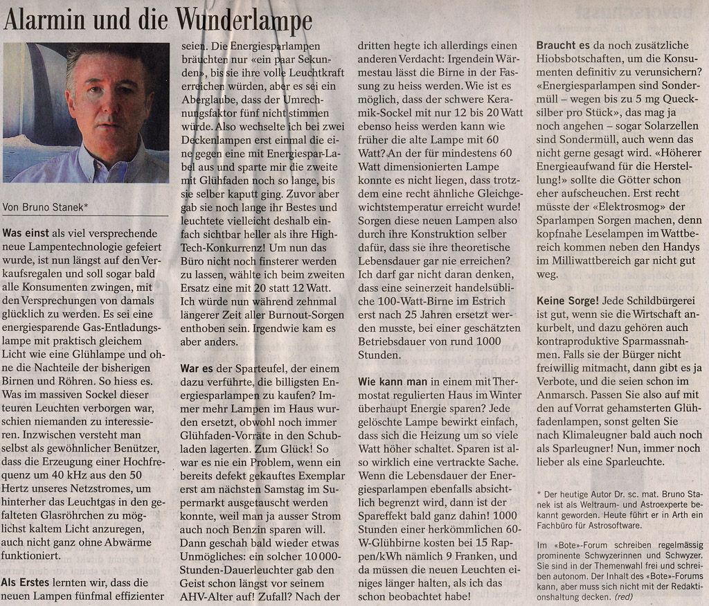 Kürzlich staunte ich wieder einmal, wie eine einzige Radiosendung einen Bestseller bewirken kann, nur weil man darin auf ein paar pikante Themen aus einem Buch zu sprechen kam. In der Publikation ging es um die Karikierung von salonfähigen bis äusserst beliebten Irrtümern. An sich ein peinliches Thema, über das die Leute sonst lieber Stillschweigen bewahren. Eine ganze Sammlung von verkehrten Vorstellungen kam hier zur Sprache, die kraft irgendeines wichtigen Amtes nicht mehr als solche erkannt werden oder werden sollen. Wer über Jahre Material zu einem solchen Buch zusammengetragen hat, kann nach Fertigstellung des Werkes nicht einfach aufhören mit der Arbeit. Er entdeckt vielmehr fast täglich neue Beispiele, die eigentlich schon in die erste Auflage gehört hätten! Der Autor kann also von Glück reden, wenn der Bestseller schon eine Neuauflage erzwingt, bevor diese unmöglich umfangreich geworden ist! Ein ganz neu beigefügtes Beispiel hatte nun mit der Schweiz zu tun, und ich möchte es mit den Bote-Lesern teilen. So unmittelbar nach dem Jahreswechsel hatten wir ja alle sehr viel Post zu verschicken und haben uns dabei so unsere Gedanken gemacht. Zum Beispiel folgende: