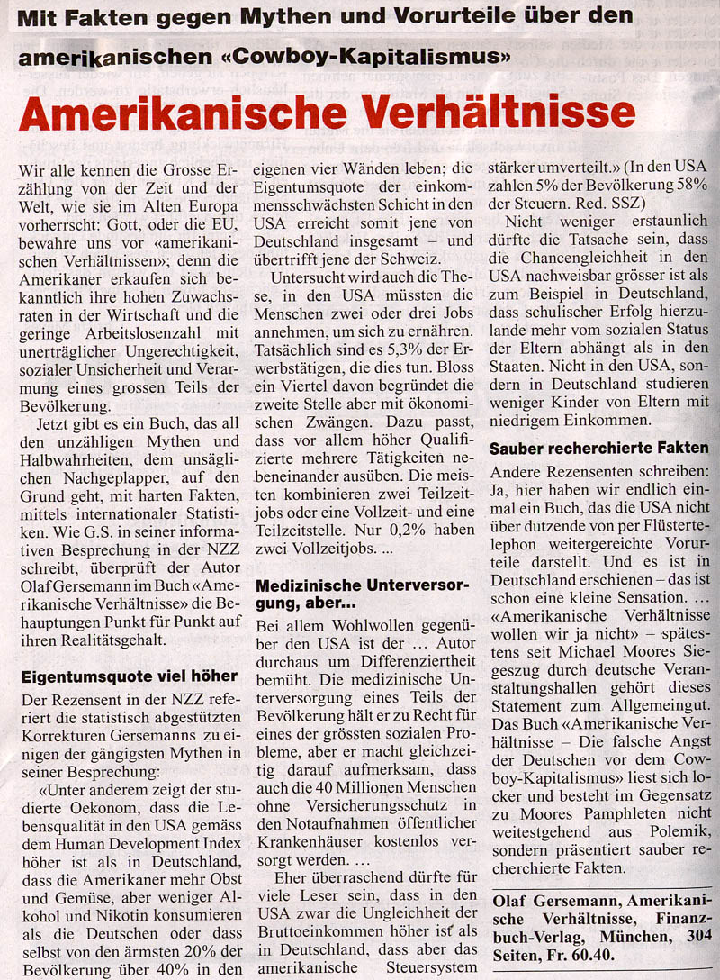 Wenn in Afrika der Arzt hat helfen können, dann wird der eigene Medizinmann gefeiert, wenn aber jener nicht hat helfen können, dann ist der Arzt schuld. Genau so mit der Konjunktur in Europa! Ohne Vorgabe durch die USA passiert hier überhaupt nie etwas, aber wenn die Börse dort gut ist, dann schreibt man dies der gesundeten Weltwirtschaft oder der «Swiss performance» zu.